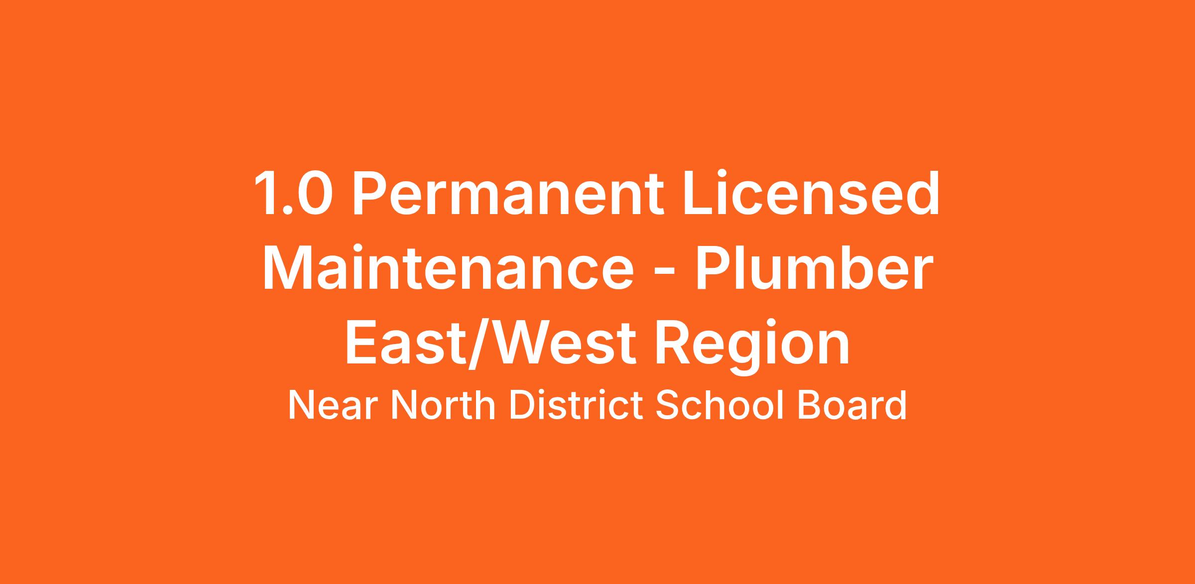 1.0 Permanent Licensed Maintenance - Plumber East/West Region