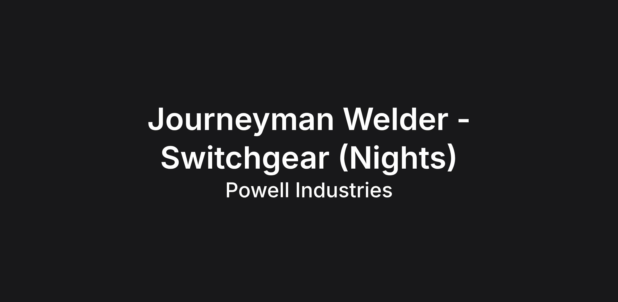 Based out of the Electrical Division Edmonton (EDE) location, the Journeyman Welder will report to the Manufacturing Supervisor of the Fabrication department. The Journeyman Welder will use a variety of welding processes and tools to produce precision parts and to construct Powell Canada products.