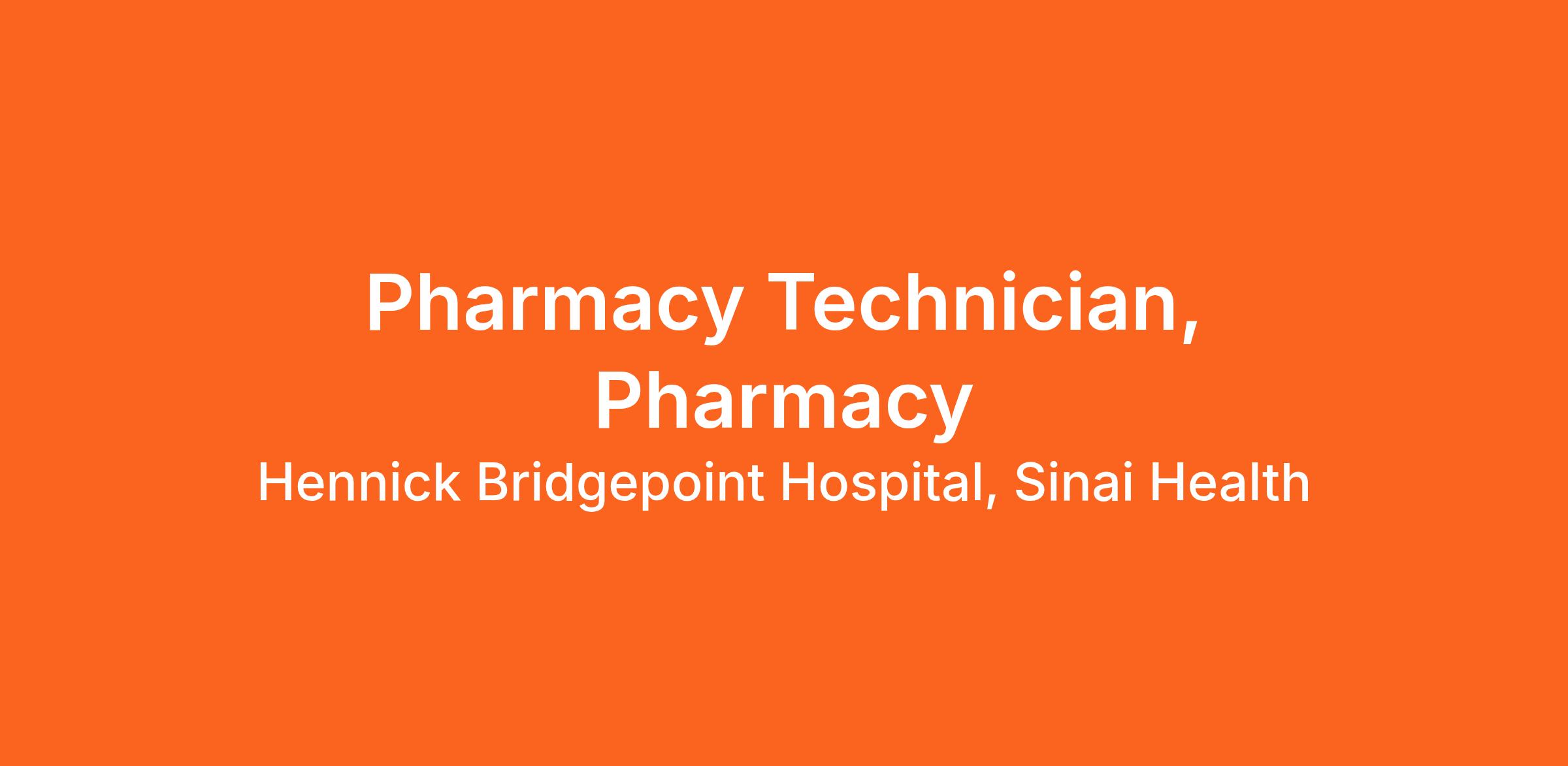 At Sinai Health, we care, create possibilities and offer hope. We are looking for a Pharmacy Technician to support our Pharmacy department.