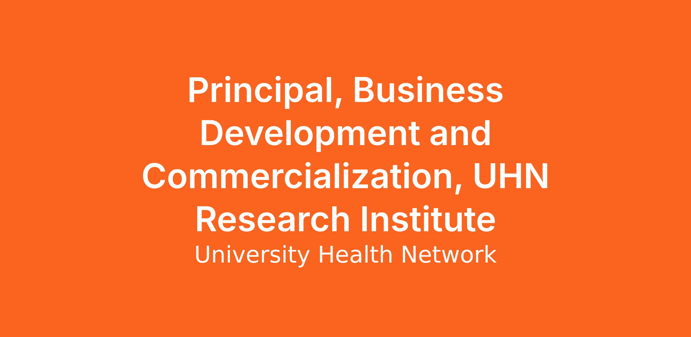 The role of Principal, Business Development and Commercialization UHN Research Institute is a key position within our office. It requires a dynamic, creative, business development professional with academic credentials, skills in relationship management and contract negotiation, and experience in fields related to the broad discovery areas of UHNRI.