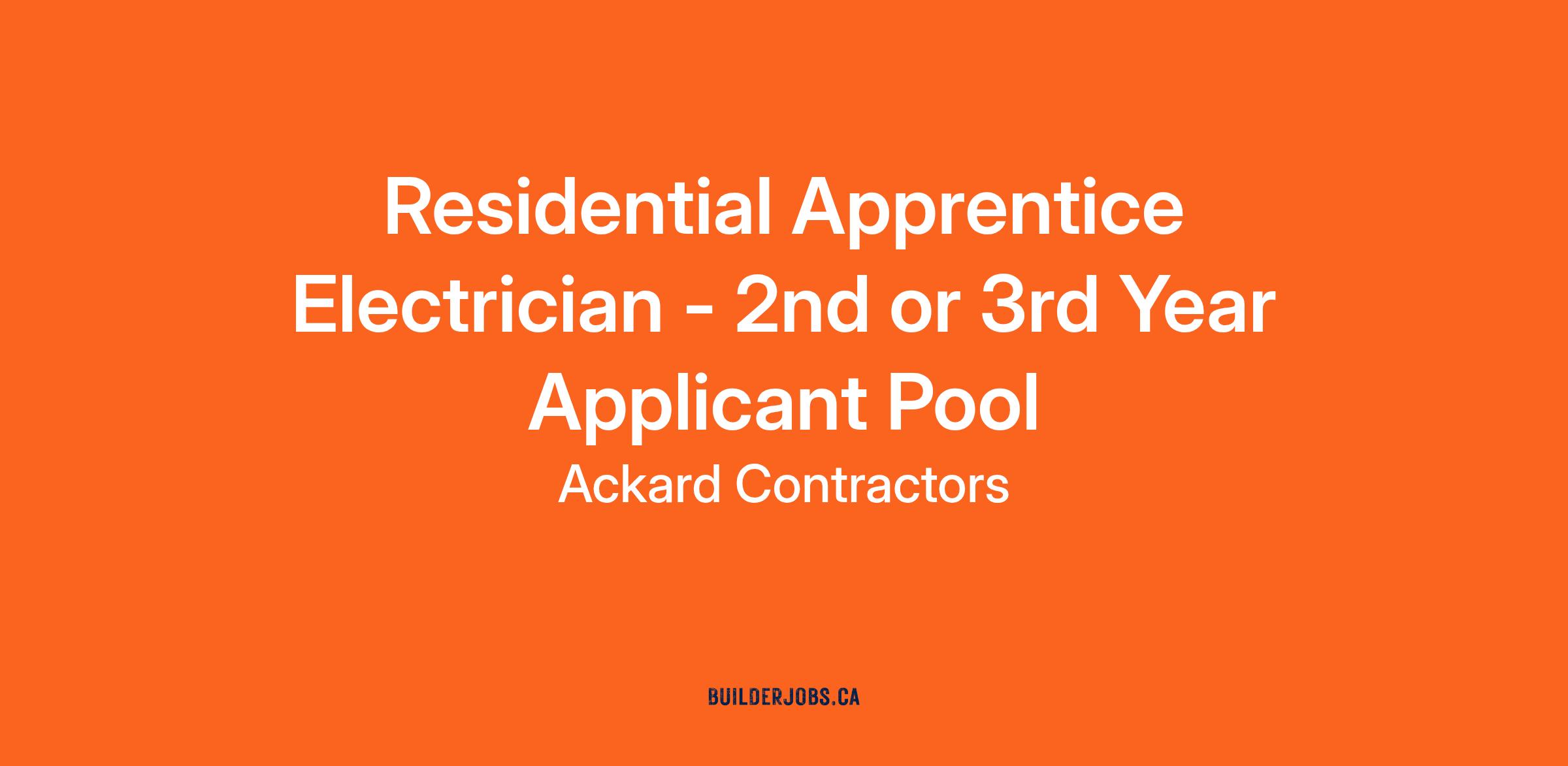 Residential Apprentice Electrician - 2nd or 3rd Year Applicant Pool