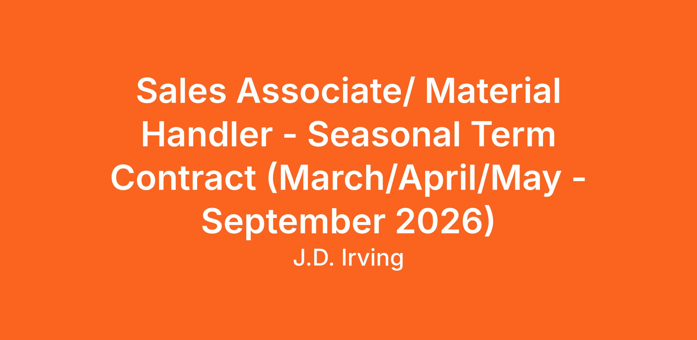 Contract duration: March/ April/ May to September 2026 - may vary based on business needs.