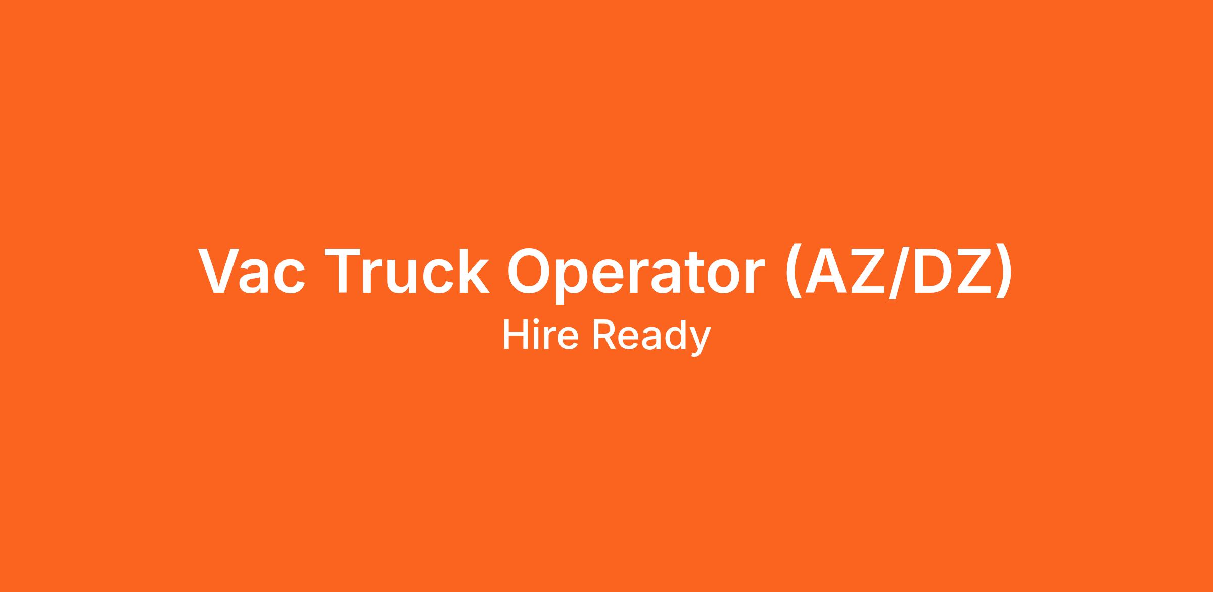 Hiring Vac Truck Operator (AZ/DZ)Location: