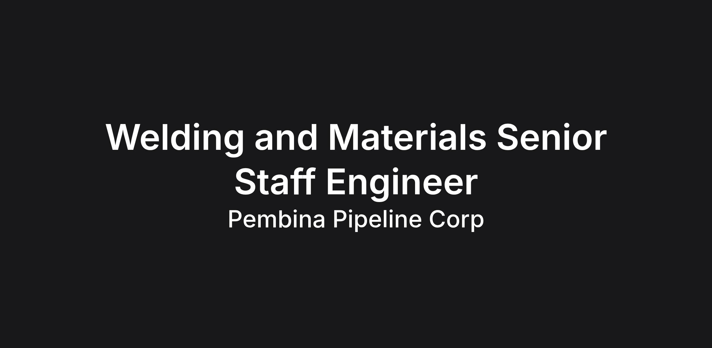 The Senior Staff, Welding & Materials Engineer, serves as the enterprise Subject Matter Expert (SME) for facility equipment and pipeline welding engineering, providing strategic technical leadership across Pembina’s asset portfolio. This role shapes engineering standards, drives sound technical decision making‑, and ensures asset integrity throughout the full asset lifecycle, with governance and oversight spanning all Pembina facilities and pipelines.